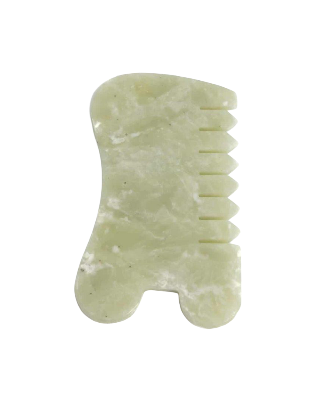 Gua Sha massage helpt om afvalstoffen uit het weefsel af te voeren. De kam/ schraper kan ingezet worden bij de hoofdhuid en gelaat.